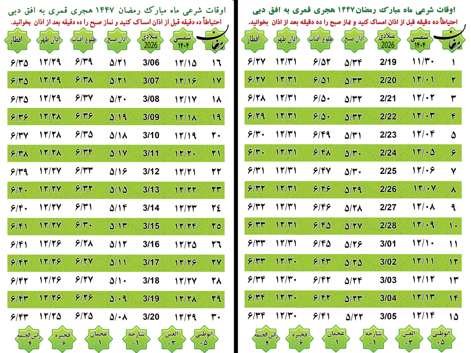 عرض تبریک حلول ماه مبارک رمضان - اوقات شرعی